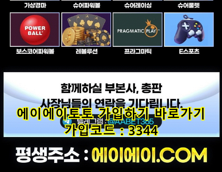 토토사이트 에이에이벳는 국내 업계 최대 자본금으로 운영되고 있는 최상의 배팅사이트 입니다.